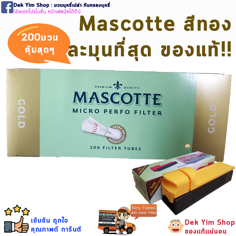 ก้นกรองบุหรี่ สูตรพรีเมียม MASCOTTE สีทอง ก้นละเอียดยิ่งขึ้นกล่องะ 200 มวน ของแท้